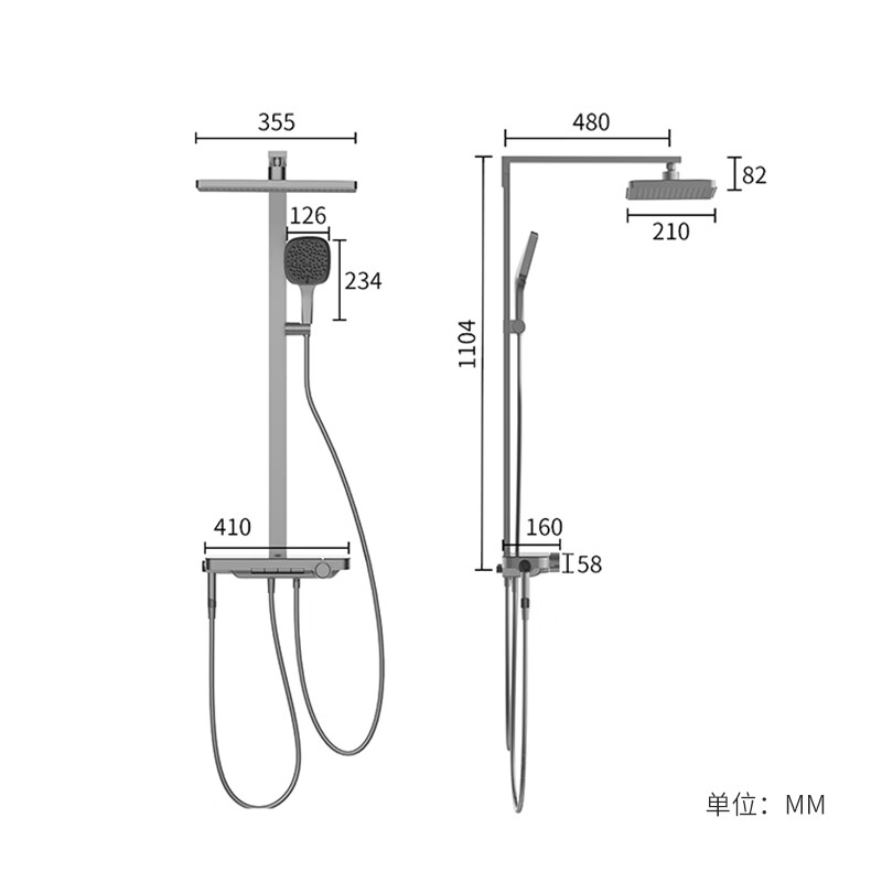 3、琴键造型设计搭配高级枪灰配色,沉稳低调又尽显简约高级。可同时控制调节四档独立出水及其水量,满足日常多种使用方式。手持、顶喷都配备自动除垢,期待后期入住后长期使用的效果。