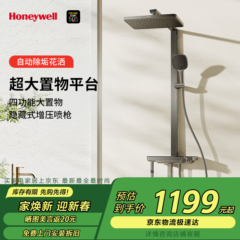 霍尼韦尔(Honeywell)500强卫浴枪灰淋浴花洒套装钢琴键卫生间浴室花洒增压家用价格:1199.00元!