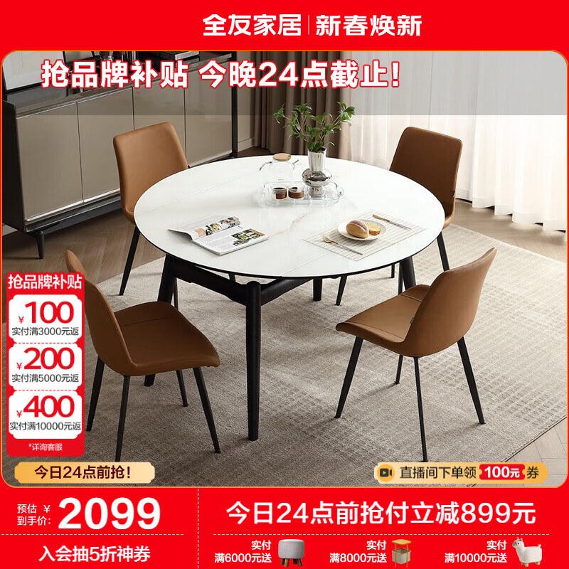 全友家居 多功能可伸缩餐桌客厅实木脚饭桌家用简约餐桌椅组合DW1221价格:2998.57元!