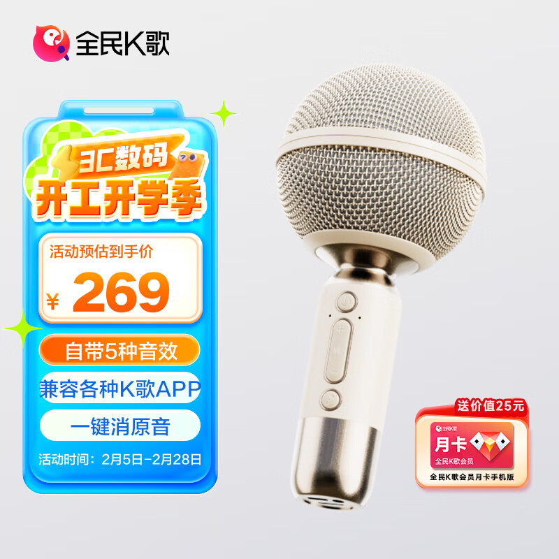 K歌麦克风 手机K歌麦克风 儿童话筒音响一体自带声卡家庭KTV音响情人节生日礼物MB53杏色价格:269.00元!