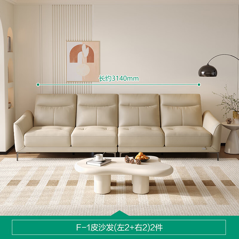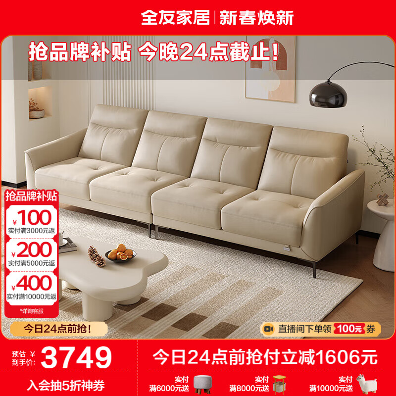 全友家居 现代简约头层牛皮艺沙发客厅家用高脚直排式真皮沙发102710价格:5355.71元!