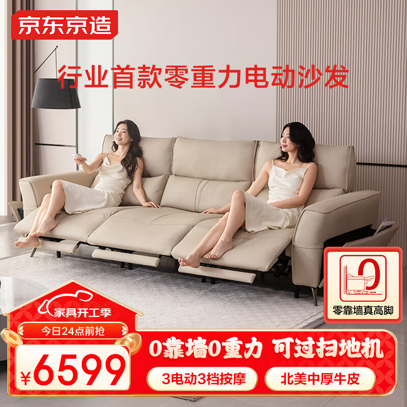 京东京造家居舒境真皮沙发 0靠墙3档按摩3电机客厅大户型2.7m白价格:7299.00元!