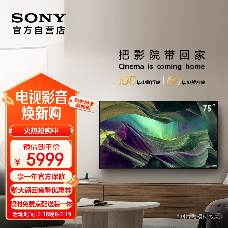索尼(SONY) KD-75X85L 75英寸 4K HDR 屏电视 广色域 120Hz高刷 X1芯片 年货节限时免费安装价格:5999.00元!
