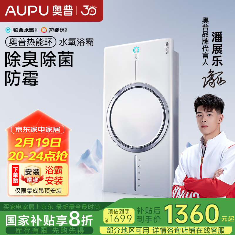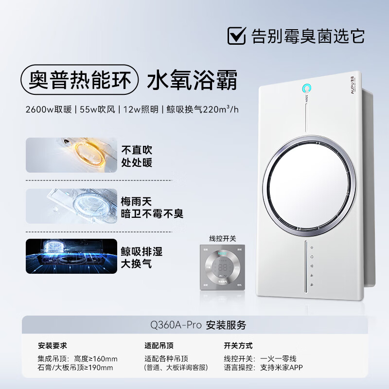 奥普(AUPU)热能环水氧浴霸Q360A-Pro风暖浴霸除臭除菌抑病毒功能智能控制价格:1699.00元!