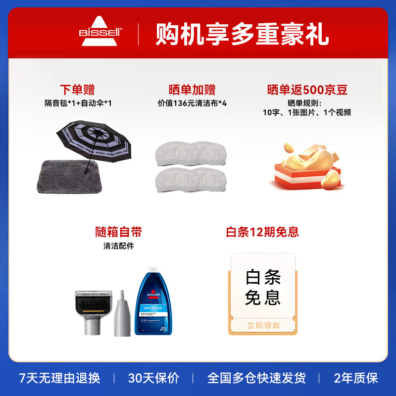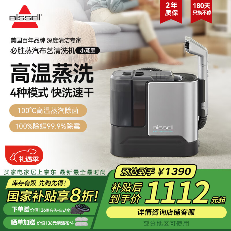必胜(BISSELL)布艺清洗机高温蒸汽抽吸一体床垫地毯沙发多功能清洁机家用 蒸汽除螨除菌清洁神器小蒸宝3791Z价格:1390.00元!