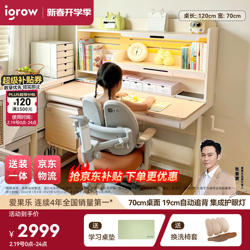 爱果乐(IGROW)咖啡猫儿童学习桌书桌椅套装写字桌升降桌中小学生家用课桌1.2m价格:4199.00元!