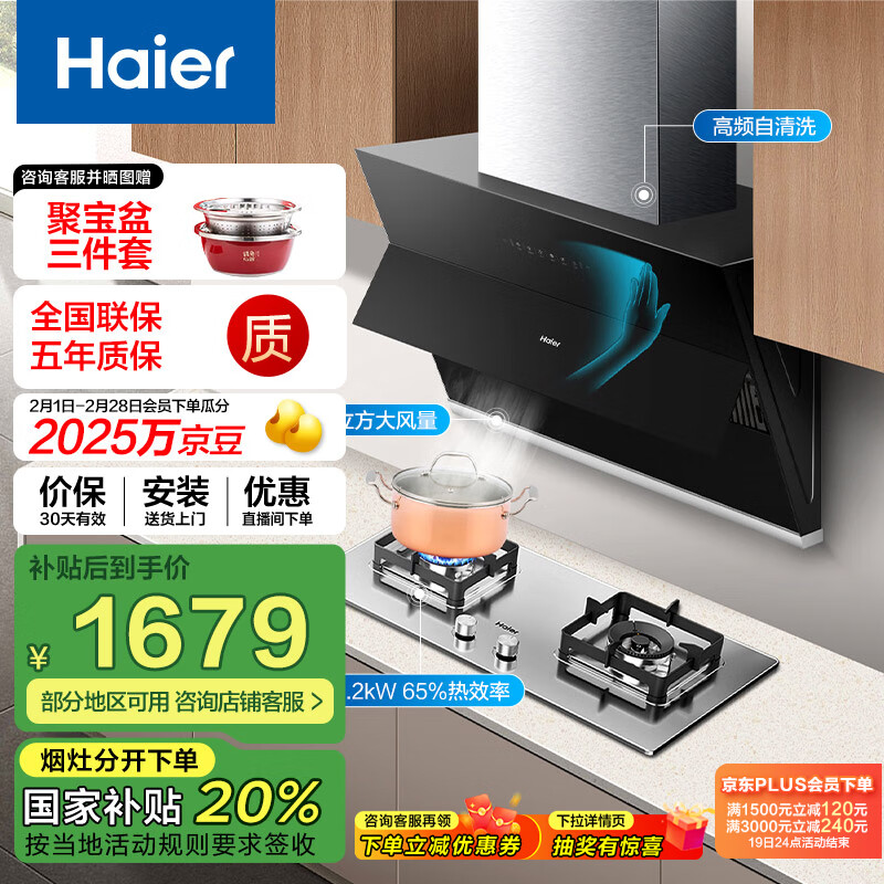 1、买了一套,油烟机加炉灶。海尔大牌子,很信任,之前的就是海尔,使了十多年。这次新款,物美价廉,以前是顶吸。现在侧吸效果更好,更流行。炉灶火很旺。挺满意的。希望还是一如既往地耐用吧!