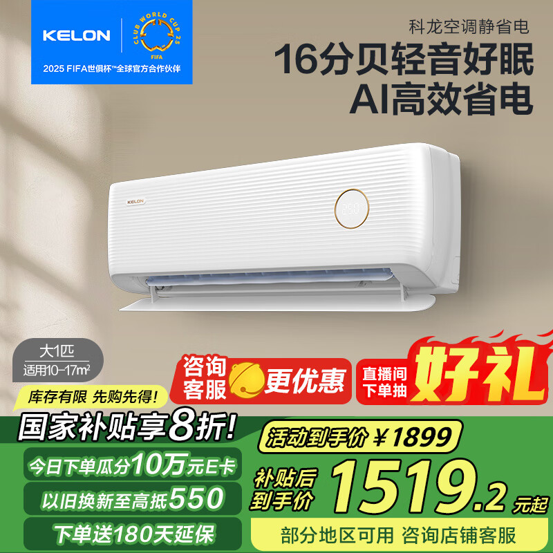 科龙(KELON)空调静省电 大1匹挂机新一级能效卧室变频冷暖轻音大风量 以旧换新政府补贴 KFR-26GW/LV1-X1价格:1899.00元!