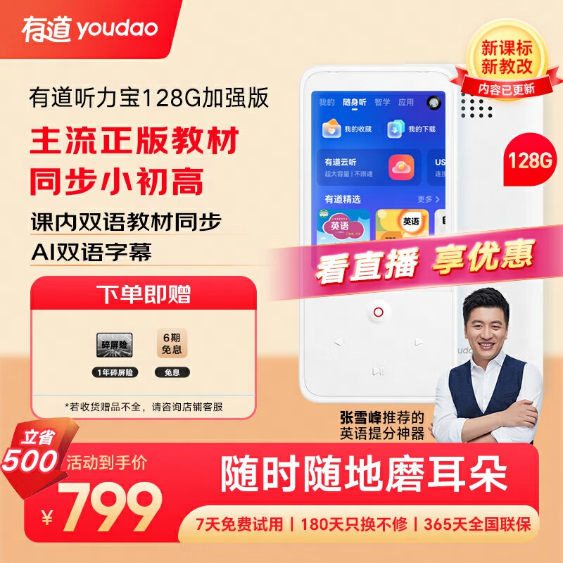 有道听力宝内容加强版128G 复读机英语宝听说宝口袋学习机英语随身听学习神器同步英语古诗词新课标价格:799.00元!