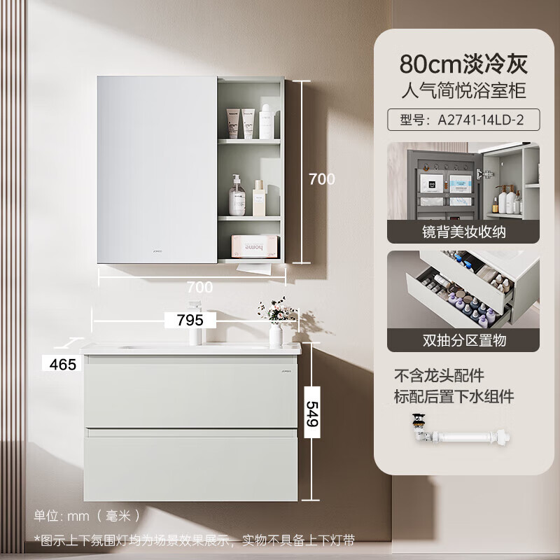 九牧(JOMOO)浴室柜 陶瓷一体盆双抽洗脸盆柜组合冷灰80cm A2741-14LD-2价格:1799.00元!