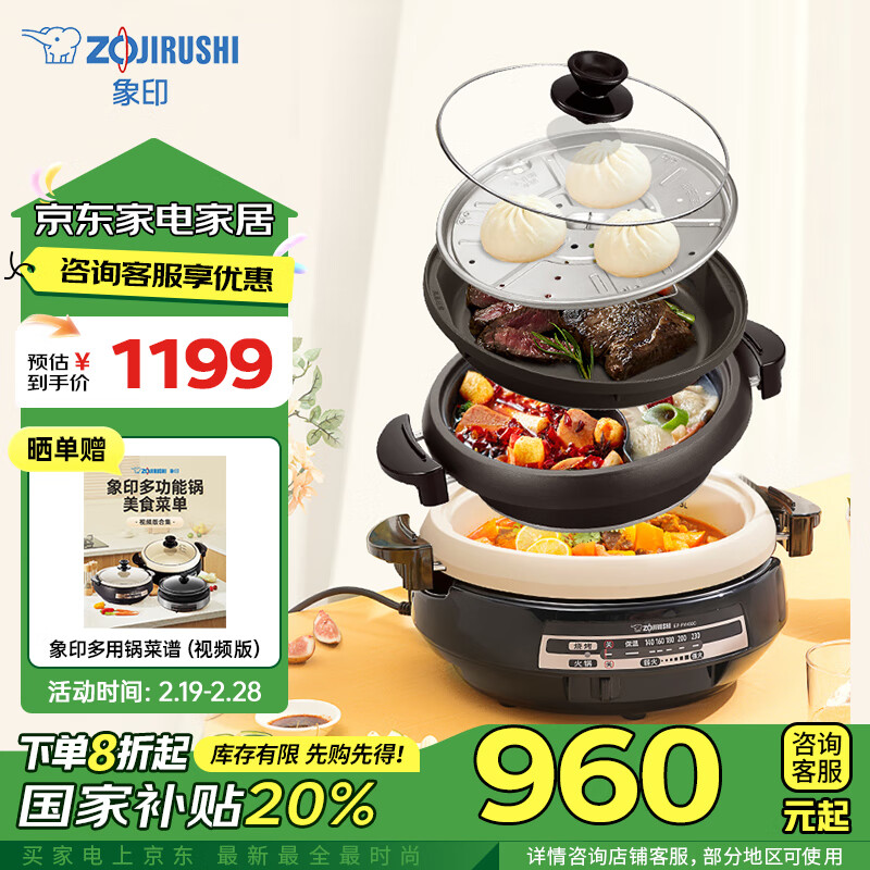 象印(ZO JIRUSHI)多用途锅多功能鸳鸯电火锅 家用电热锅/电煎锅/电蒸锅/电炖锅EP-PVH30C价格:1199.00元!