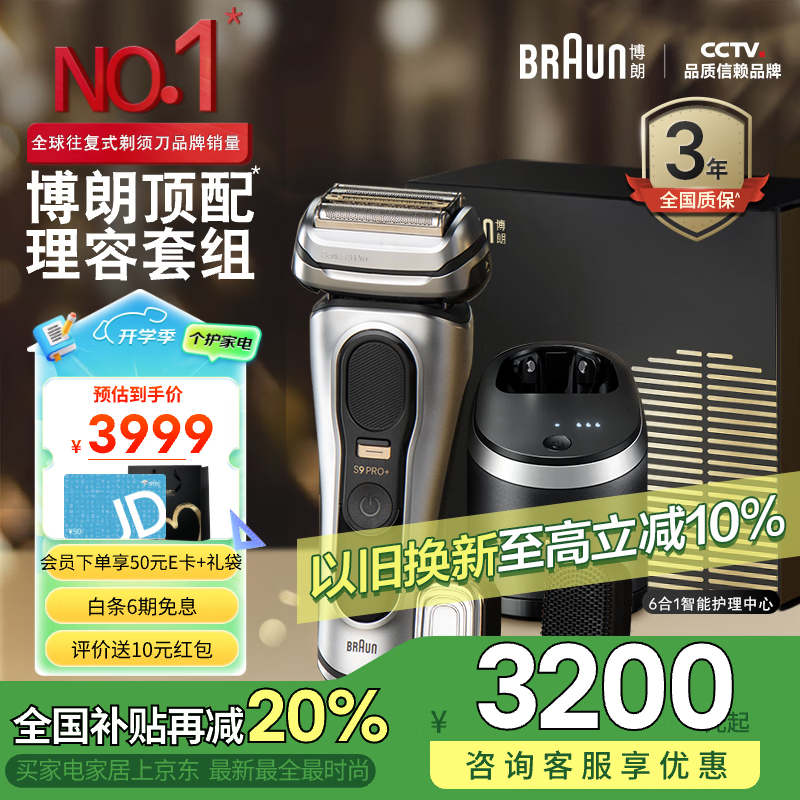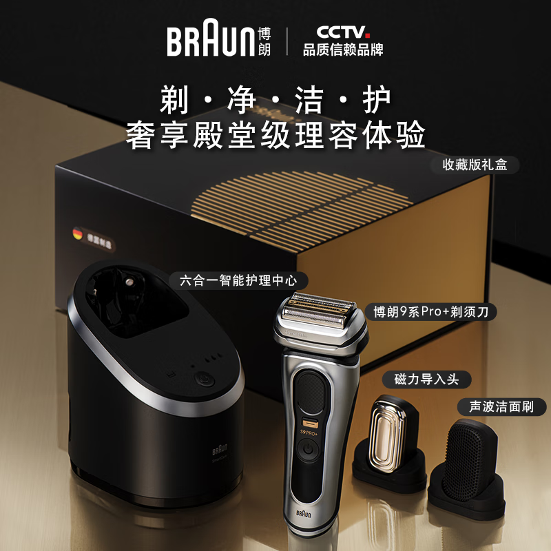 博朗(BRAUN)【补贴】9系pro+升级版清洁中心多配件礼盒款电动剃须刀整机进口往复式生日礼物价格:3999.00元!