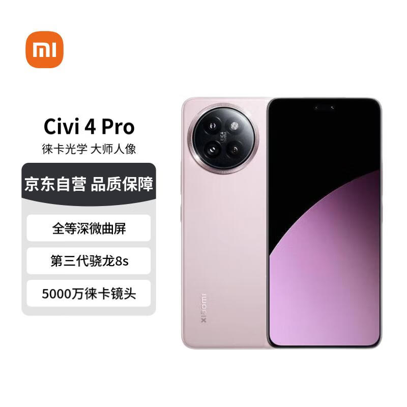 小米 Civi 4 Pro 16GB+512GB 柔雾粉 5000万徕卡Summilux镜头 全等深微曲屏5G手机【赠话费券】价格:2849.00元!