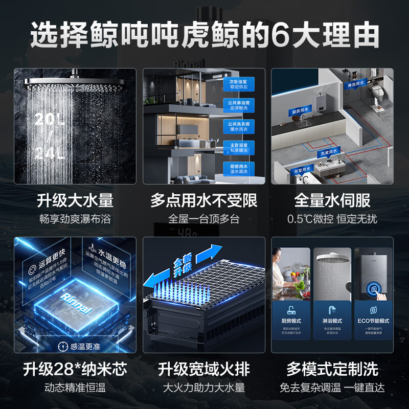 林内(Rinnai)【鲸吨吨虎鲸】24升大升数燃气热水器 【家电补贴15%】全量水伺服恒温 24GD72(JSQ47-GD72)价格:6299.00元!