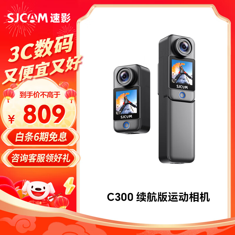 SJCAM速影C300续航版拇指运动相机摩托车头盔骑行防抖防水行车记录仪钓鱼vlog直播预录视角64价格:809.00元!