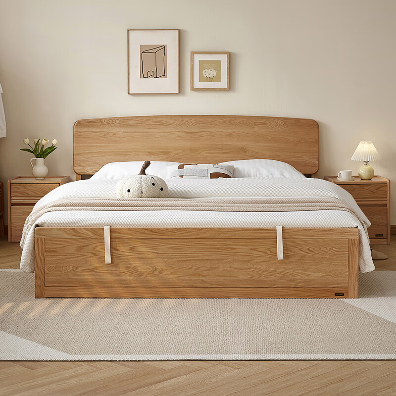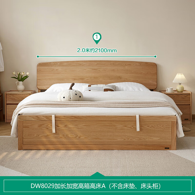 全友家居实木床原木风双人床2米2.2米高箱储物主卧室大床家具DW8029价格:6284.29元!