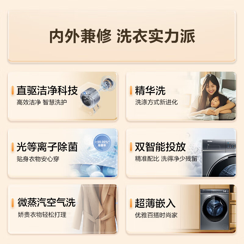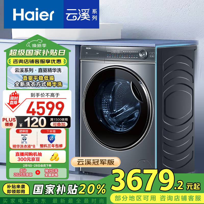 海尔(Haier)滚筒洗衣机全自动 云溪版376 洗烘一体机带烘干 XQG100-HBD14376LU1 家电补贴以旧换新价格:4599.00元!