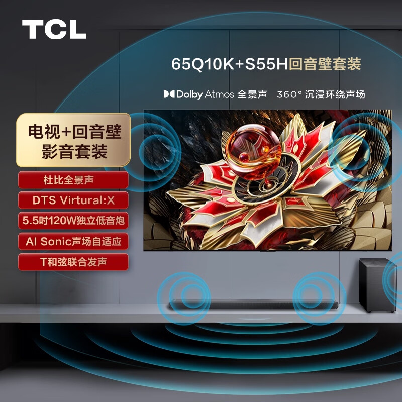 TCL音响版本-65Q10K 65英寸 旗舰QD-Mini LED电视 Q10K+杜比全景声回音壁 S55H价格:7698.00元!