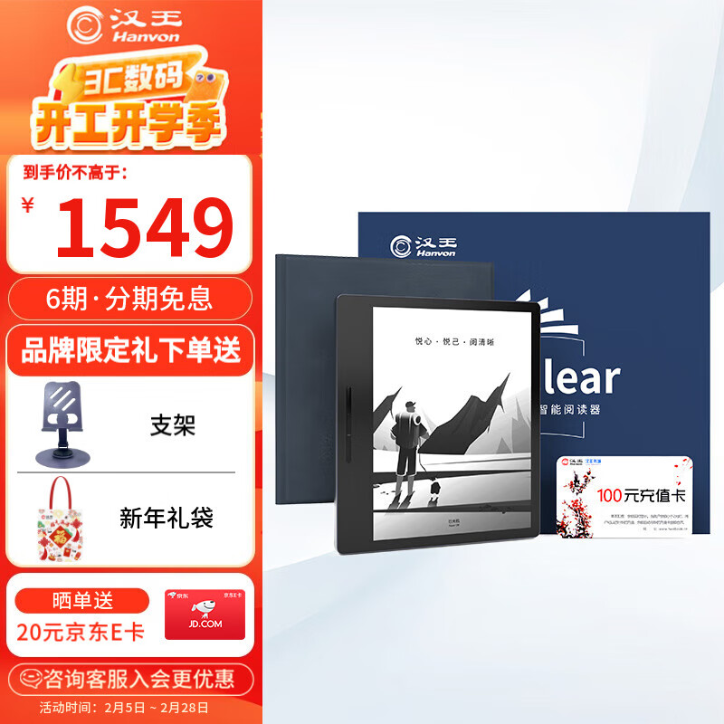 汉王(Hanvon)Clear 7英寸电子书阅读器礼盒版 墨水屏电纸书 看书学习便携阅读平板电子纸4+64版价格:1549.00元!