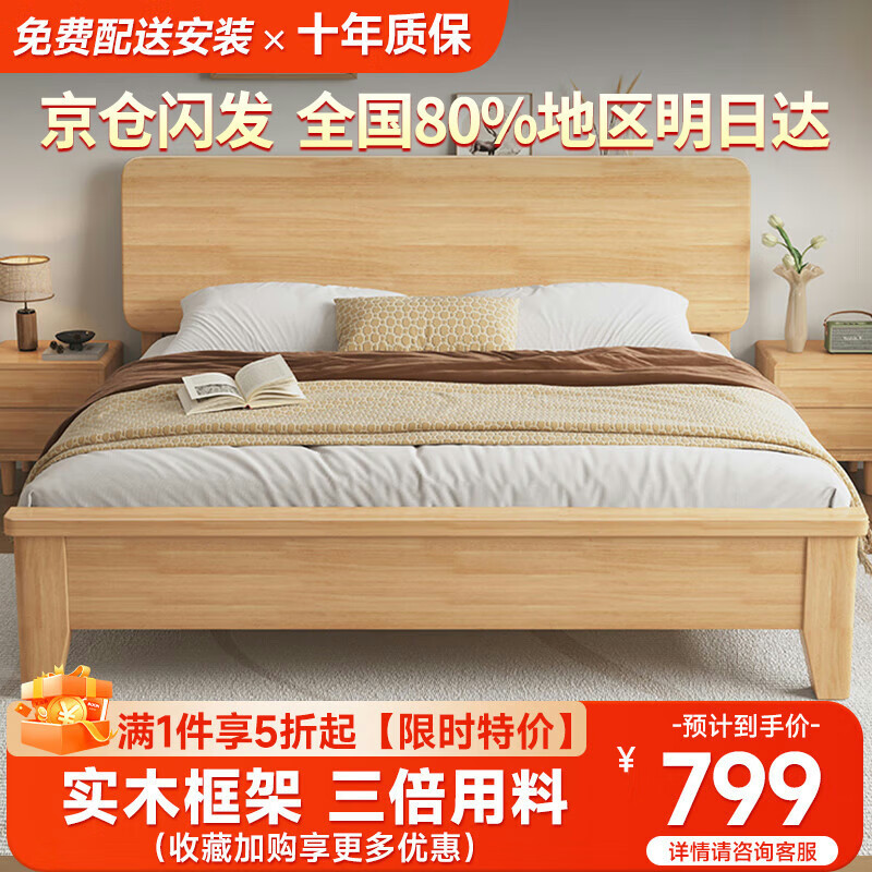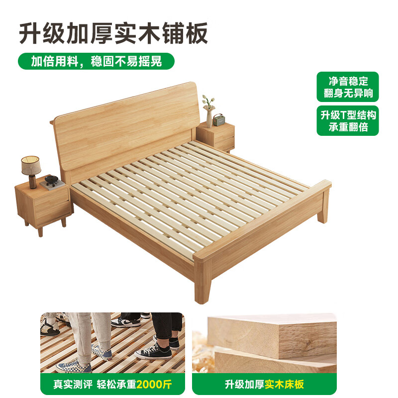 品族北欧实木床主次卧木床出租房双人大床PZ-702 1.5*2.0米框架床价格:1598.00元!
