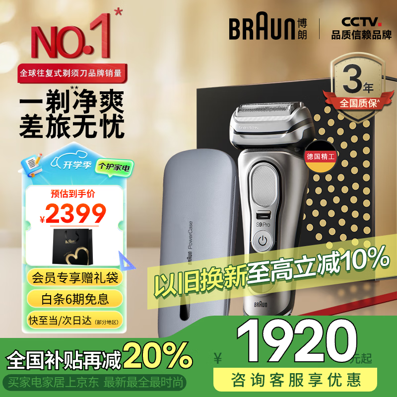 博朗(BRAUN)【补贴】9系pro尊享版皮质旅行充电礼盒款电动剃须刀整机德国进口往复式刮胡刀生日礼物价格:2399.00元!