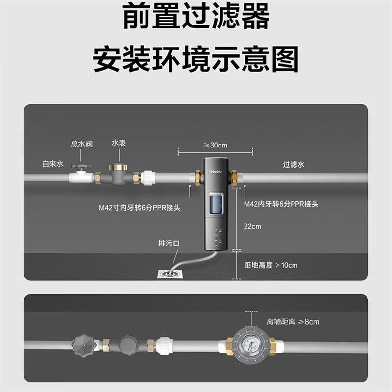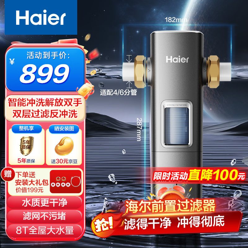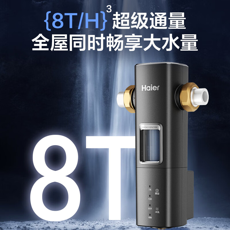 海尔(Haier)前置过滤器8T大通量家用顶配鲜活水40微米可视化双网自动反冲洗全屋净水器银河pro HQZ60-HFAZ26价格:899.00元!