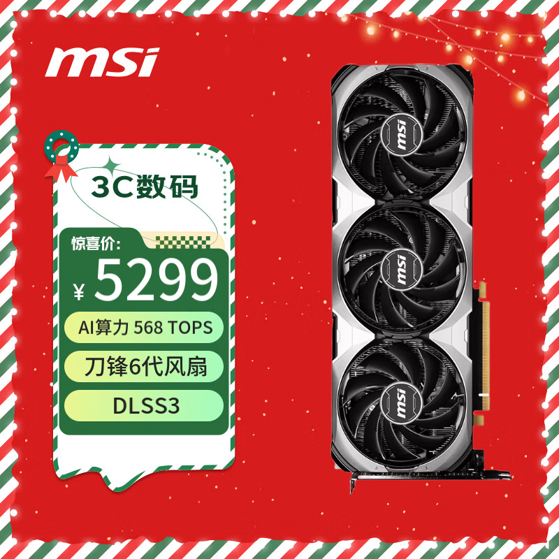 微星(MSI)万图师 GeForce RTX 4070 SUPER 12G VENTUS 3X OC 电竞游戏AI设计智能学习黑神话:悟空显卡价格:5299.00元!