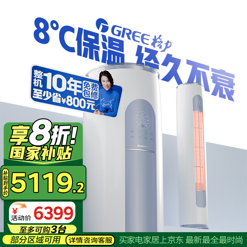 格力(GREE)3匹 云逸Ⅱ 1级能效变频 客厅空调立式空调柜机 格力空调KFR-72LW/NhGm1BAj 家电补贴价格:6399.00元!