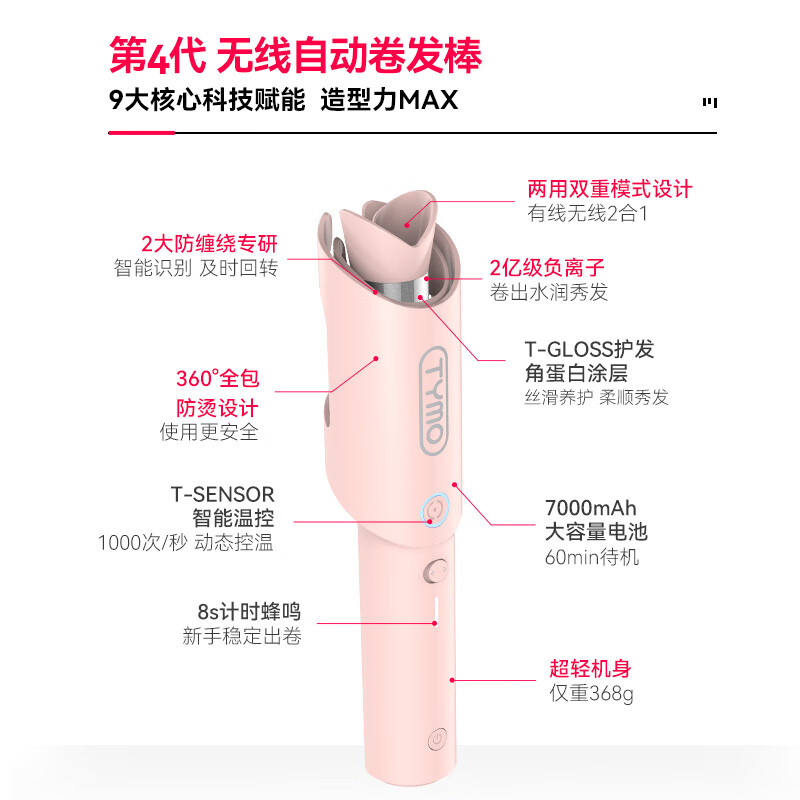 TYMO第4代无线自动卷发棒负离子护发不伤发两用持久定型大波浪卷发神器 送女生节生日礼物价格:299.00元!