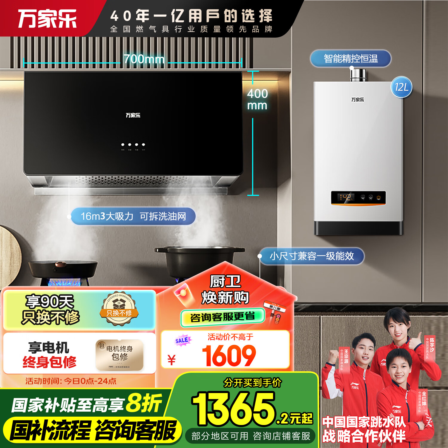 万家乐烟灶热水器三件套 家用小尺寸抽油烟机燃气灶具热水器厨房多件套装AZ1+KA031B+D13天然气价格:1609.00元!