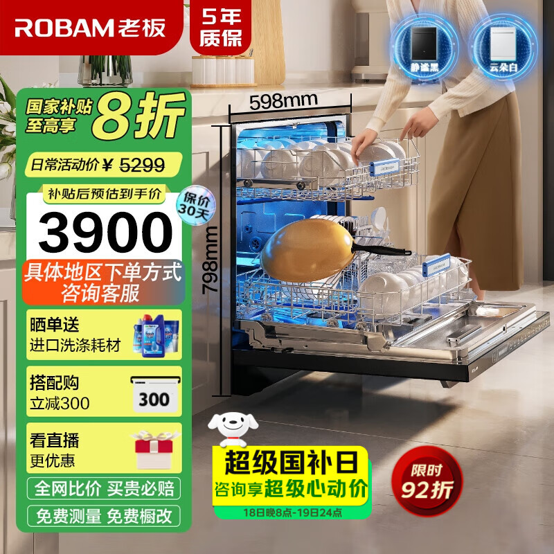 老板(Robam)F80D黑洗碗机15+1套去重油污嵌入式热风烘干消杀168h长效存储洗消一体家用独立式分层洗价格:5299.00元!