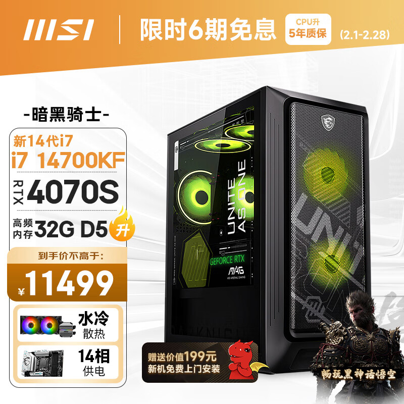 微星(MSI)暗黑骑士MAG 14代i7 14700KF/RTX4070Super/32G/1T 水冷电竞游戏设计师台式电脑主机整机价格:12199.00元!