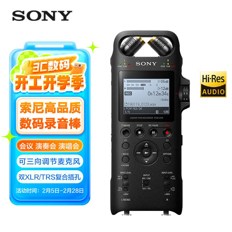 索尼(SONY)专业数码录音笔PCM-D10 16GB 黑色 数字降噪Hifi无损播放 大直径三向双麦克风价格:2959.00元!
