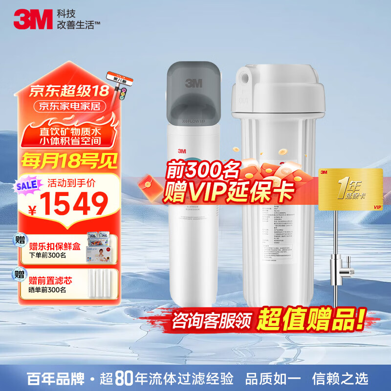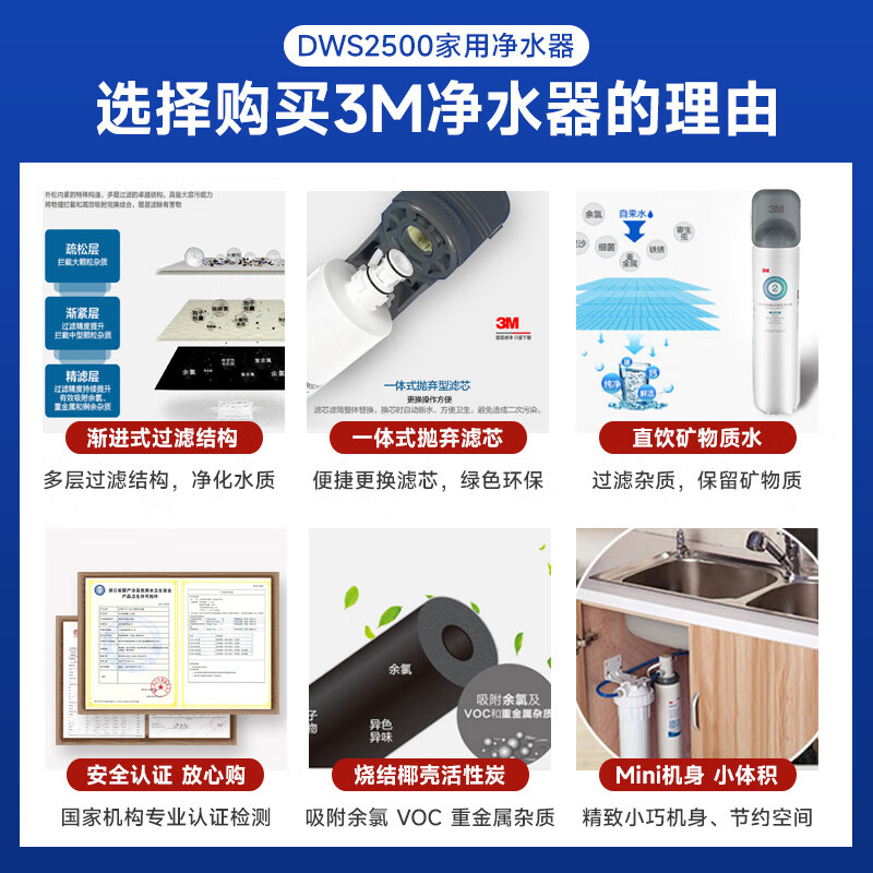 3M 净水器家用净水机0废水直饮厨下2.4L/分大流量4000升处理量800G过滤器 DWS2500 CN价格:1549.00元!