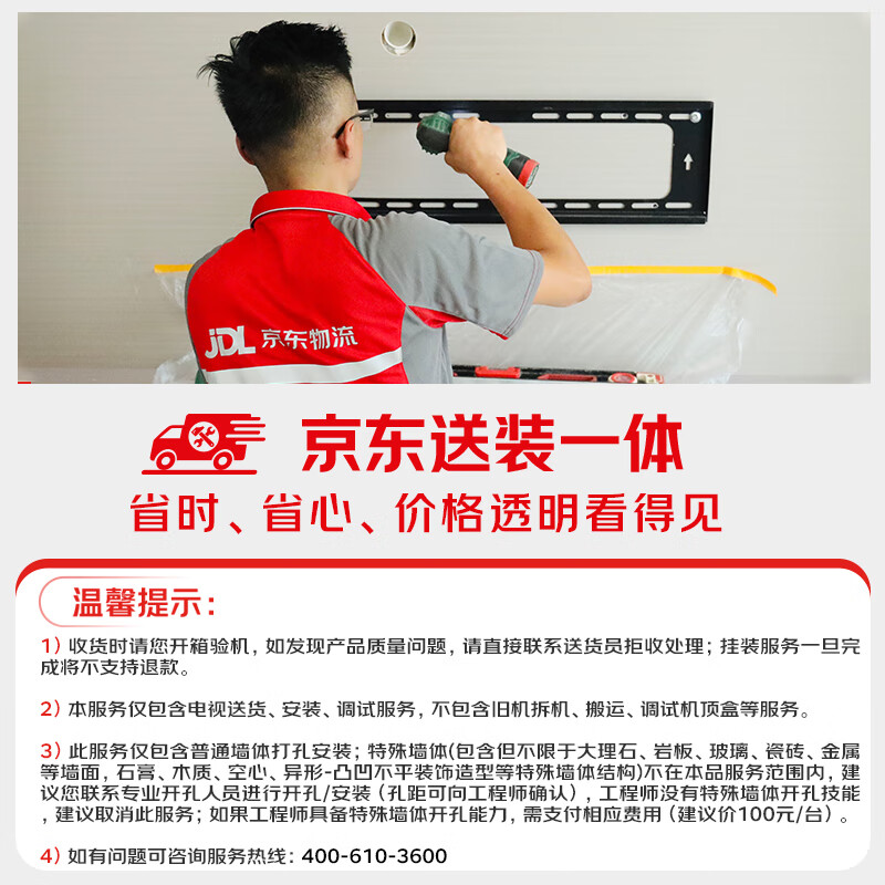3、送装一体,安装师傅很热情。电视很清晰,Sony大法好!昨天下单今天送货安装,速度很快?