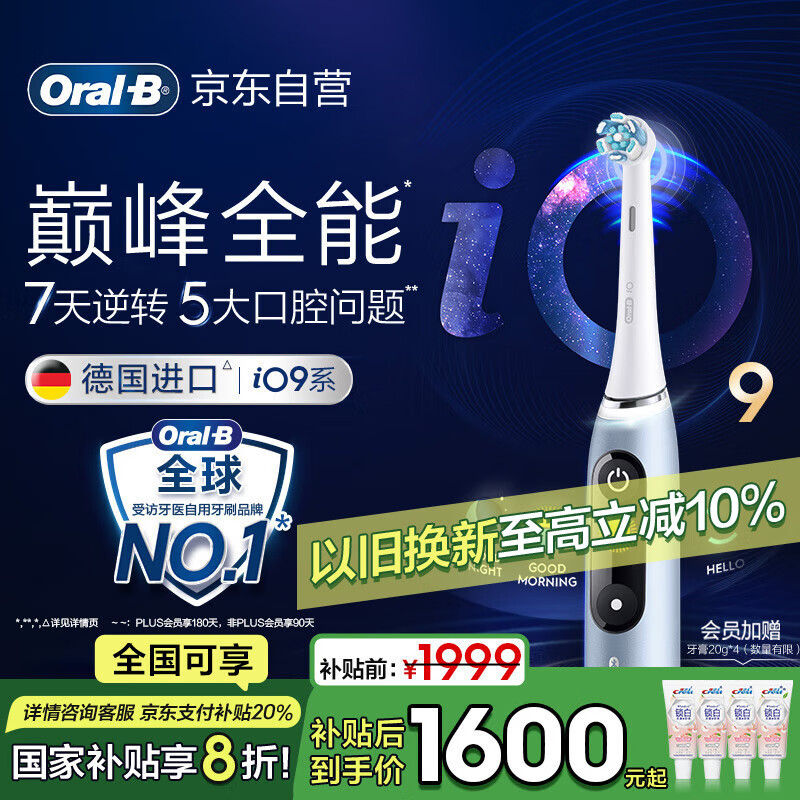 欧乐B成人电动牙刷iO9系全能刷深度清洁牙龈呵护情侣送礼赠家电补贴(新老包装随机发货)价格:1809.00元!