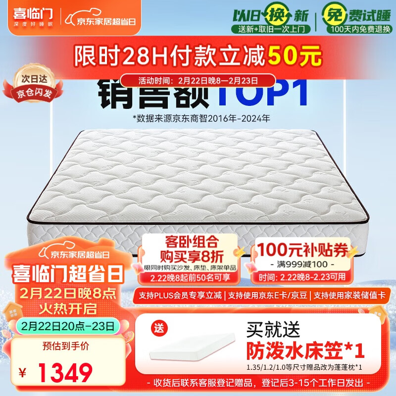 喜临门 椰棕床垫 邦尼尔弹簧床垫 抑菌防螨床垫 极光白2S 1.5x2米价格:1399.00元!