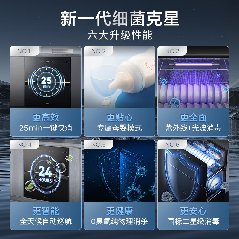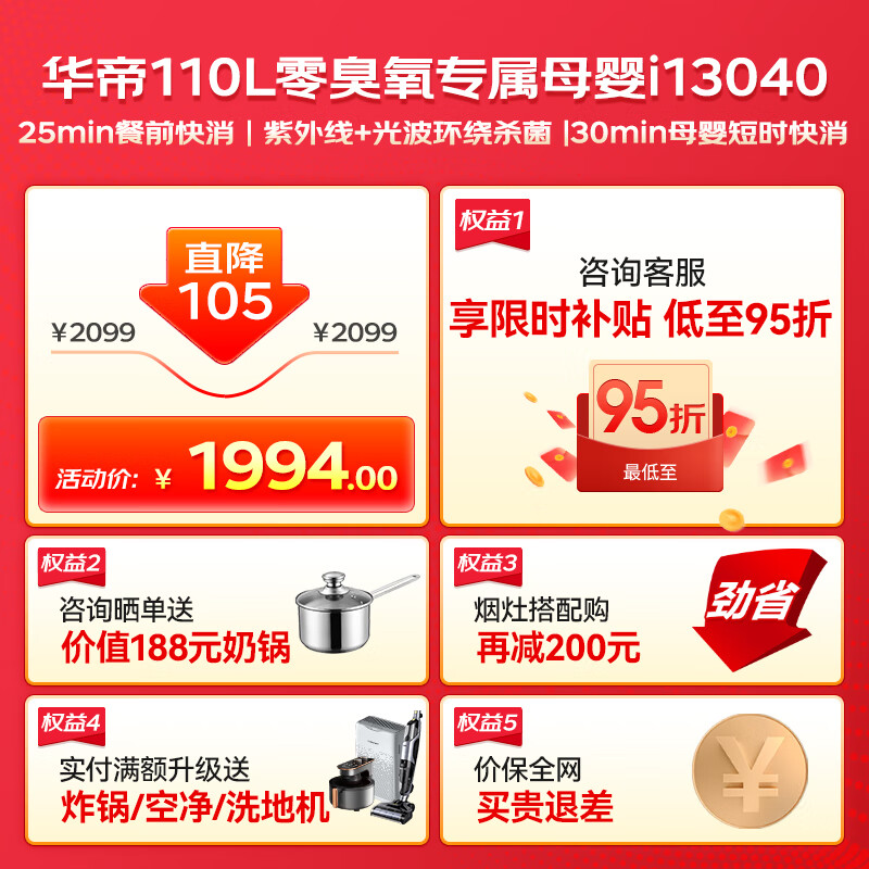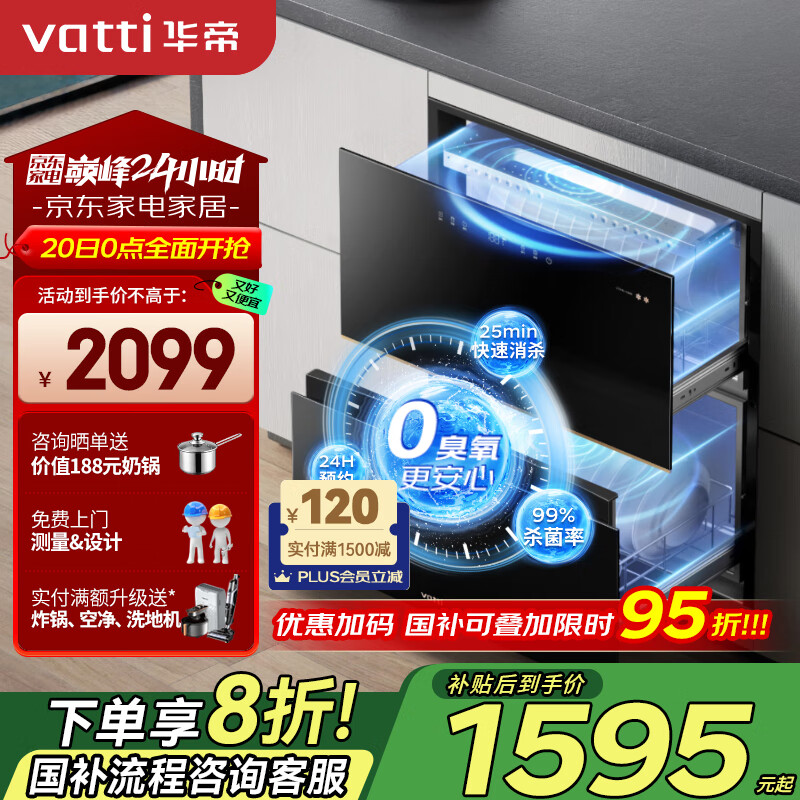 华帝(VATTI)消毒柜官方家用嵌入式消毒碗柜110L大容量两门三抽紫外线0臭氧纯物理母婴消毒 家电政府补贴i13040价格:2099.00元!