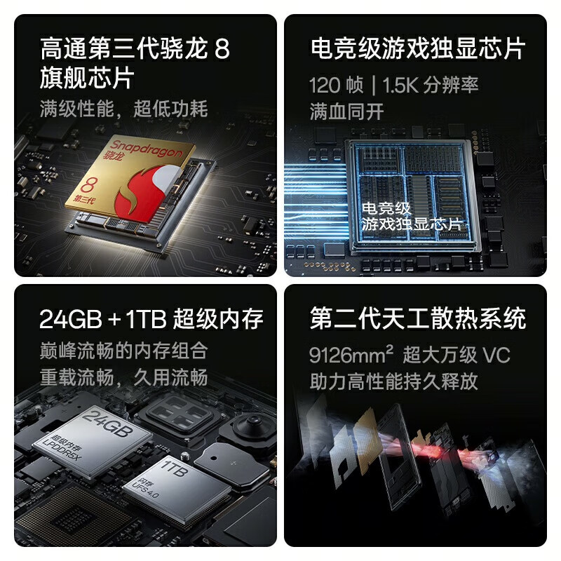 2、手机的芯片骁龙8gen3非常好,性能很强,功耗低。屏幕不错,通透。系统也有很多实用功能,可玩性高,推荐。