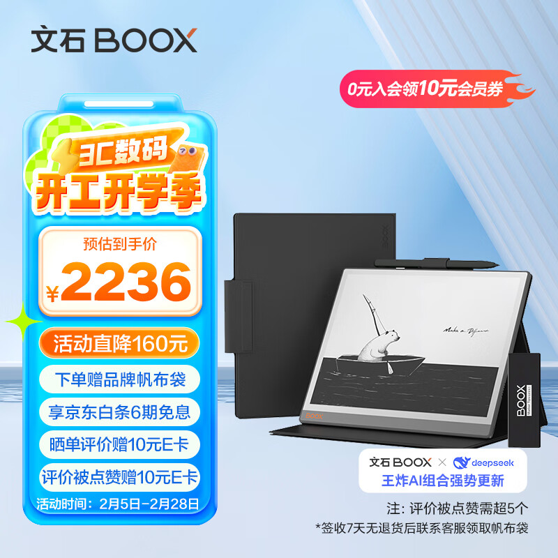 BOOX文石 NoteX3青春版 10.3英寸电子书阅读器 墨水屏电纸书电子纸 磁吸皮套+笔芯套装价格:2236.00元!