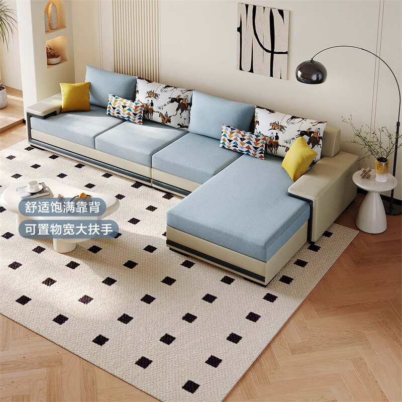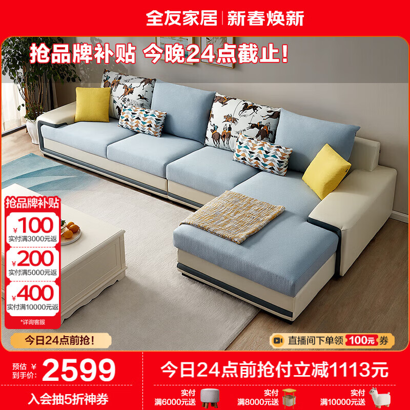 全友家居 现代简约家用大户型贵妃转角沙发客厅实木架布艺沙发102085价格:3712.86元!