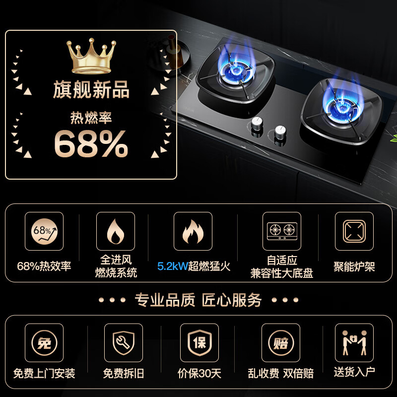 1、家里老的用了很久了,不怎么好用,火小,时不时熄火,这灶价格不错,比想象中的价格低了很多。双十一卖的太火了,调货都调了好几天才到,安装师傅是到货之后第二天来的,安装的很快,还把火调整好了。这灶的火力嘎嘎猛,用了快一个月来评论,使用感觉挺好的。