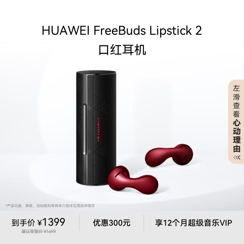 华为 FreeBuds Lipstick 2 口红耳机 真无线蓝牙耳机 高清音质 魅影黑 送礼价格:1399.00元!