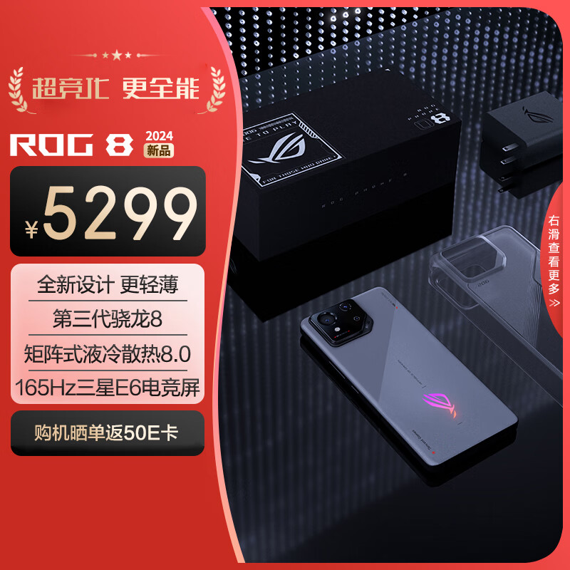 ROG8 AI游戏手机 16+256风暴灰 骁龙8Gen3 矩阵式液冷散热8.0 三星电竞屏 165Hz高刷 防抖云台 5G价格:5299.00元!