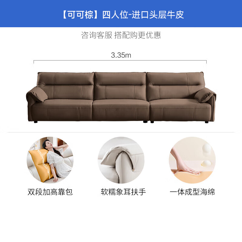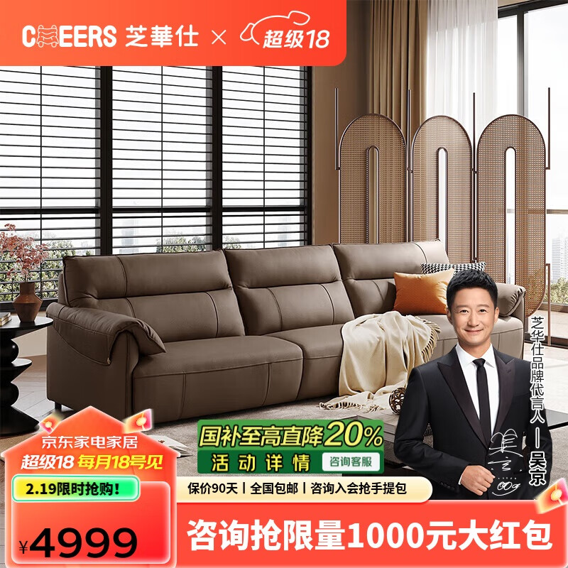 芝华仕(CHEERS)现代轻奢真皮沙发直排头层牛皮沙发客厅简约芝华士3095棕四价格:4999.00元!