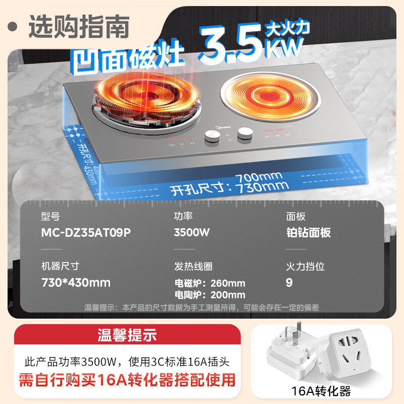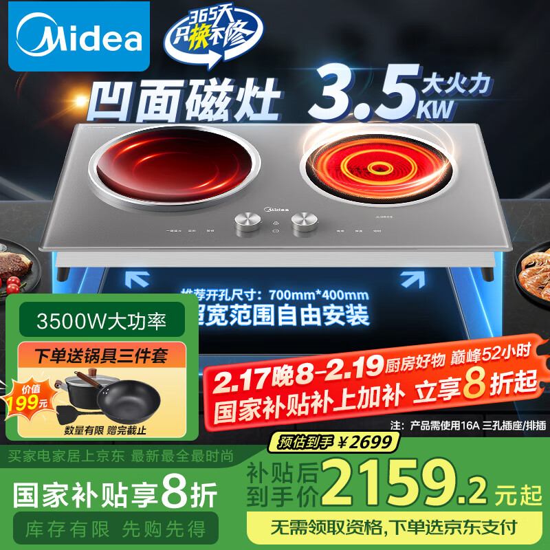 美的(Midea)电磁炉双灶凹面 3500W家用大功率电陶炉【补贴】嵌入式电磁灶 不挑锅具恒匀火 DZ35AT09P价格:2699.00元!