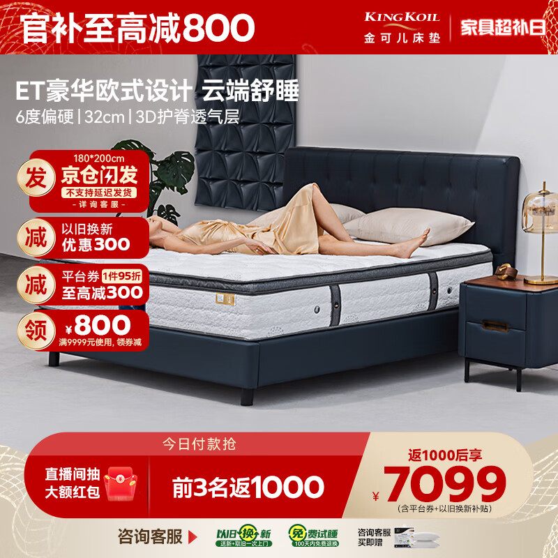 金可儿(Kingkoil)乳胶床垫五分区独立弹簧海绵床垫软硬适中繁星C+床垫1.8米*2米价格:8699.00元!