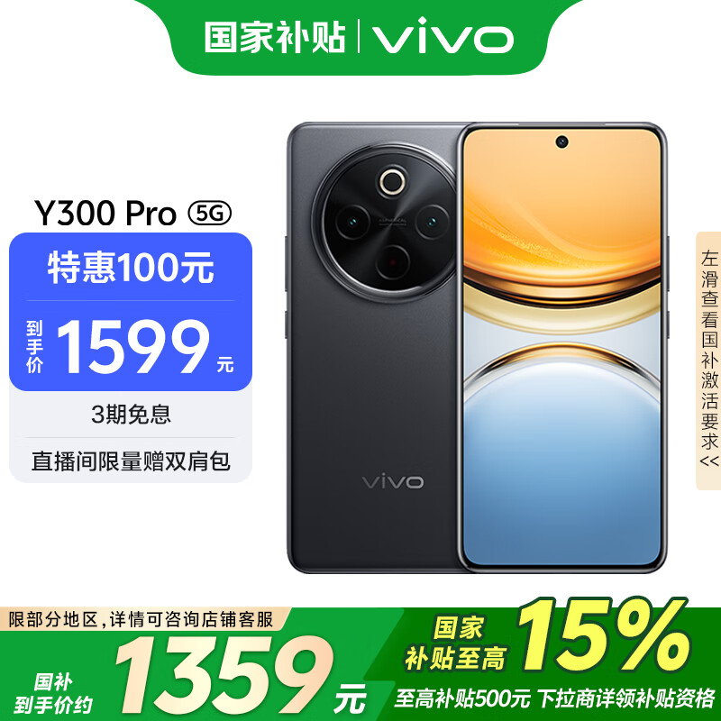 vivo Y300 Pro 8GB+256GB 墨玉黑 补贴 6500mAh超薄蓝海电池 全等深微四曲屏 AI 拍照 手机价格:1699.00元!