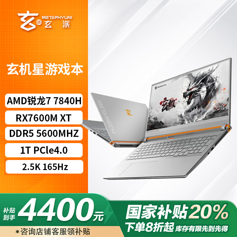 玄派玄机星 16.1英寸游戏笔记本电脑政府补贴20%锐龙R7-7840H 16G DDR5 1T RX7600M XT独显 165Hz 2.5K价格:5499.00元!