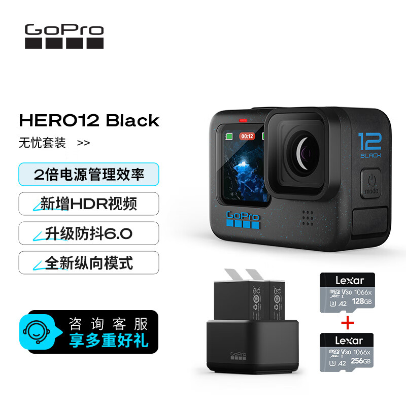 GoPro12 运动相机 户外摩托骑行 潜水防水防抖相机 无忧套装加256G存储卡套组价格:4037.00元!